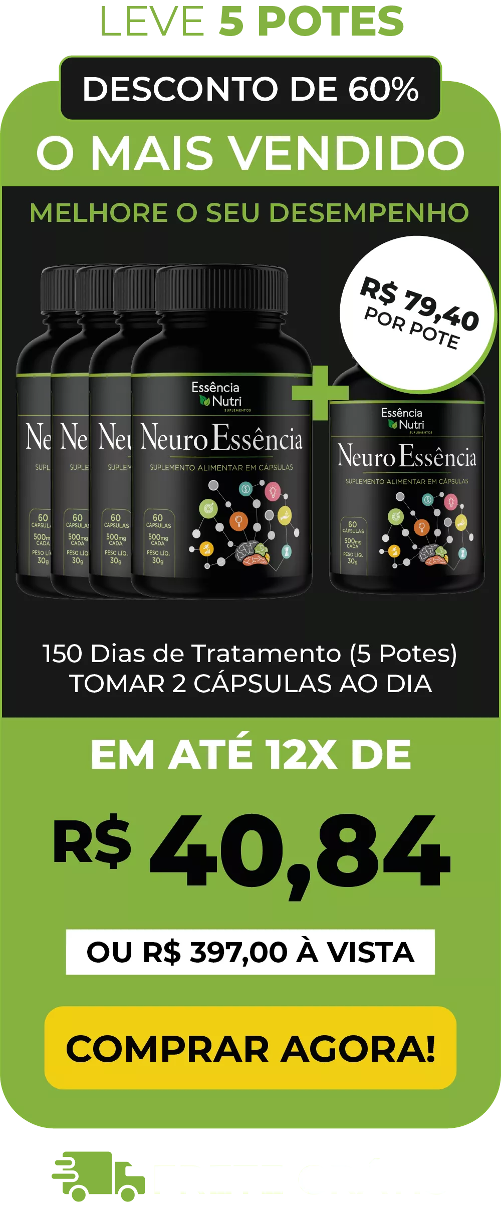 Neuro Essência é a solução ideal para quem busca potencializar a capacidade cognitiva sem recorrer a estimulantes artificiais. Com uma fórmula inovadora e segura, especialistas recomendam Neuro Essência para quem deseja mais clareza mental, memória afiada e foco duradouro.